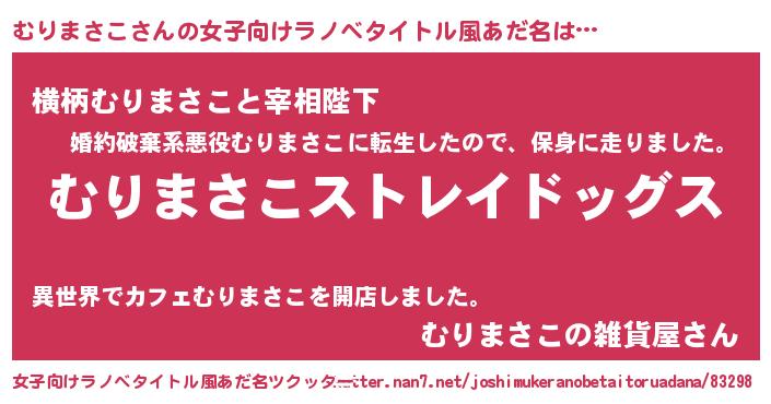 | 男性向けラノベタイトル風あだ名 | 『Re:むりまさこから始める異世界生活』 |