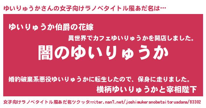 | ヒーロー風カッコイイあだ名 | 『最強戦士ユイリュウカ』『仮面ユイダー』 |