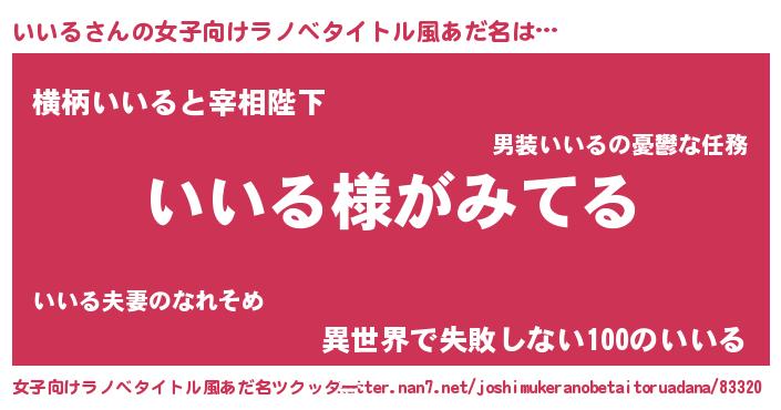 | 男性向けラノベタイトル風あだ名 | 『いいるの嫁は女の子じゃないと思った?』 |