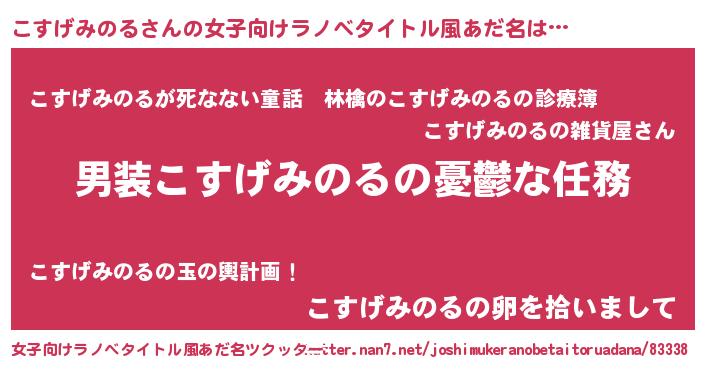 | 男性向けラノベタイトル風あだ名 | 『冴えないこすげみのるの育てかた』 |