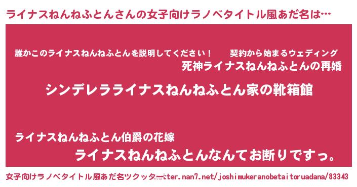 | 男性向けラノベタイトル風あだ名 | 『冴えないライナスねんねふとんの育てかた』 |