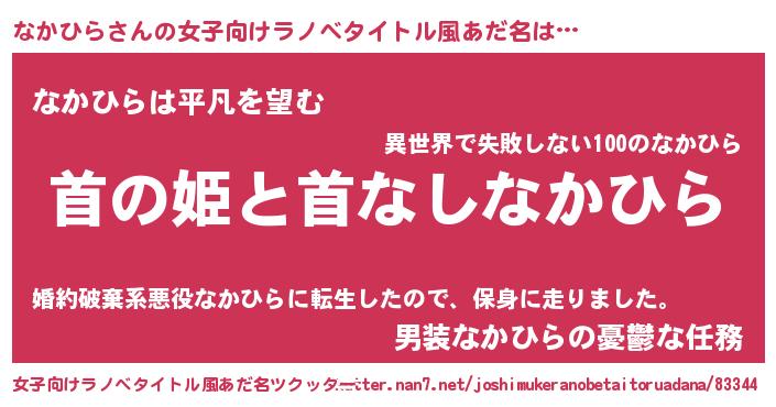 | 男性向けラノベタイトル風あだ名 | 『はたらくなかひらさま!』 |