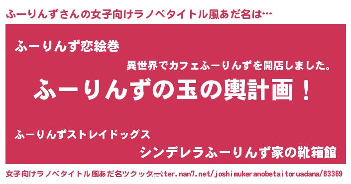 | 男性向けラノベタイトル風あだ名 | 『ふーりんず~年齢イコール彼女いない歴の魔法使い~』 |