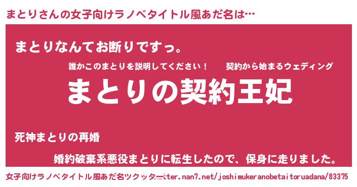 | 胡散臭い通販商品みたいなあだ名 | 『来世でも幸せになれる健康食品…その名も「まとり」』 |