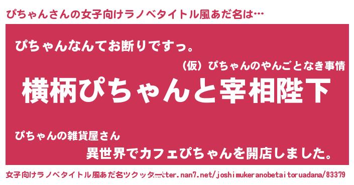 | ヘコむあだ名 | 『ぴちゃん(震え声)』『ぴちふぇ~』 |