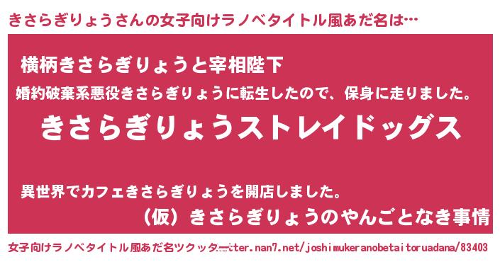 | 意味不明あだ名 | 『自称きさらぎりょう』 |