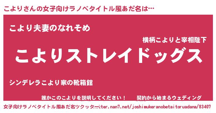 | 男性向けラノベタイトル風あだ名 | 『Re:こよりから始める異世界生活』 |