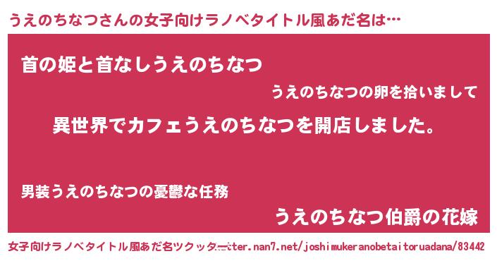 | 胡散臭い通販商品みたいなあだ名 | 『前代未聞の健康食品…その名も「うえのちなつ」』 |