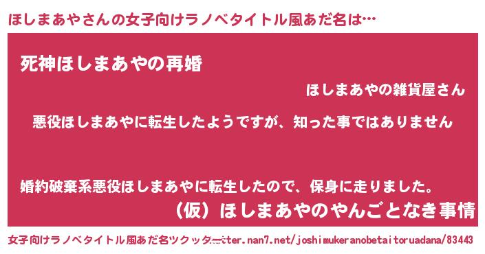 | 男性向けラノベタイトル風あだ名 | 『この素晴らしい世界にほしまあやを!』 |