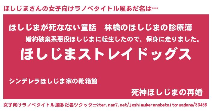 | 胡散臭い通販商品みたいなあだ名 | 『芸能人もオススメする高麗人参…その名も「ほしじま」』 |