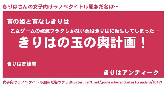 | ヒーロー風カッコイイあだ名 | 『最強戦士キリハ』『仮面キリダー』 |