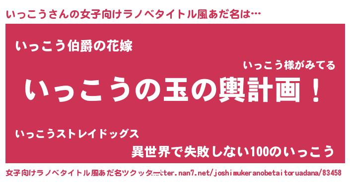| 男性向けラノベタイトル風あだ名 | 『転生したらいっこうだった件』 |