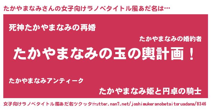 | 肩書あだ名 | 『たかやまなみ少佐』『たかやまなみ社長』 |