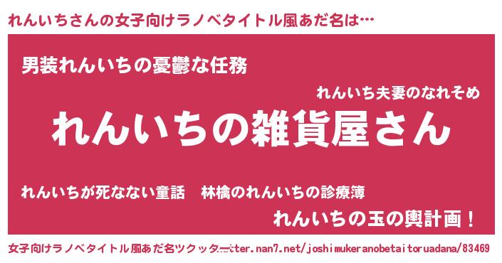 | 男性向けラノベタイトル風あだ名 | 『やはりれんいちの青春ラブコメはまちがっている 』 |
