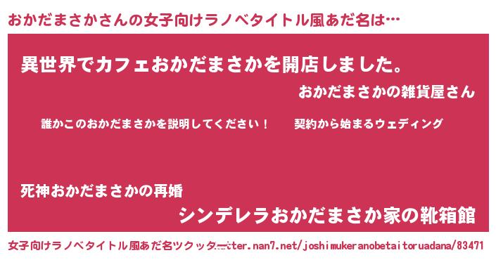 | 男性向けラノベタイトル風あだ名 | 『オカダマサカアートオンライン』 |