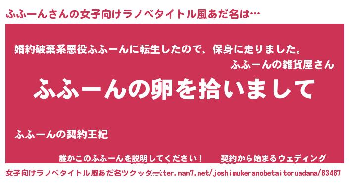 | 男性向けラノベタイトル風あだ名 | 『ふふーんの嫁は女の子じゃないと思った?』 |