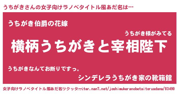 | 男性向けラノベタイトル風あだ名 | 『うちがきに滅ぼされるだけの簡単なお仕事です』 |