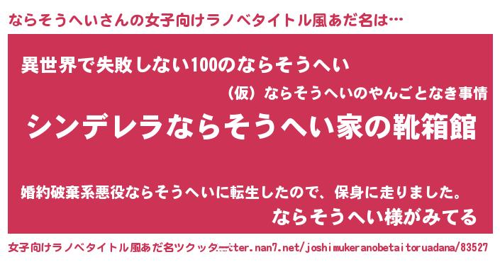 | 胡散臭い通販商品みたいなあだ名 | 『来世でも幸せになれる水素水…その名も「ならそうへい」』 |