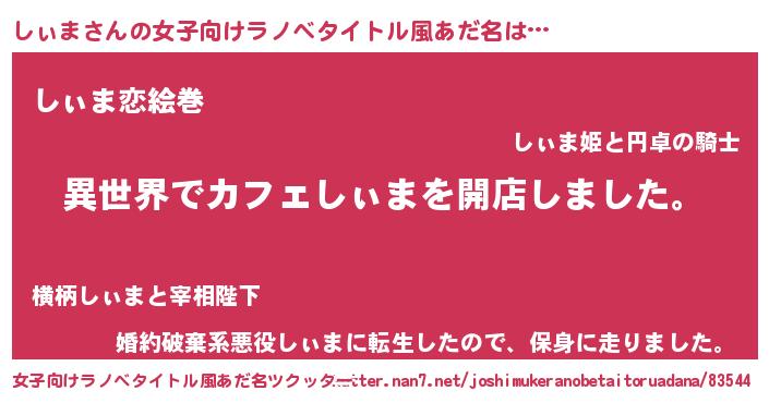 | ヒーロー風カッコイイあだ名 | 『ネオシィマ』『愛の使者しぃま』 |