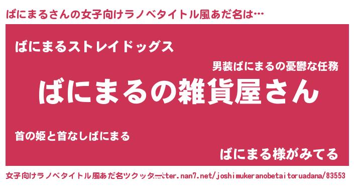 | 男性向けラノベタイトル風あだ名 | 『やはりばにまるの青春ラブコメはまちがっている 』 |