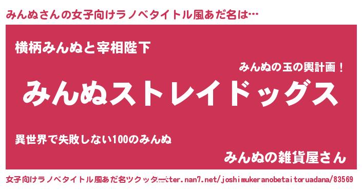 | 男性向けラノベタイトル風あだ名 | 『Re:みんぬから始める異世界生活』 |