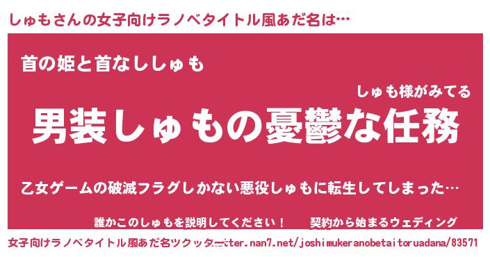 | 胡散臭い通販商品みたいなあだ名 | 『モテモテ間違いなし水晶球…その名も「しゅも」』 |