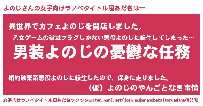 | 伝説のあだ名 | 『古文書に記された吟遊詩人よのじ』 |