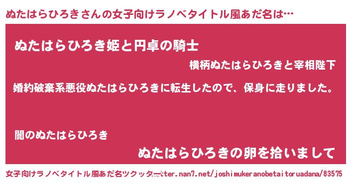 | 胡散臭い通販商品みたいなあだ名 | 『必ず成功するブレスレット…その名も「ぬたはらひろき」』 |
