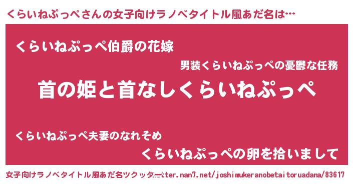 | 男性向けラノベタイトル風あだ名 | 『はたらくくらいねぷっぺさま!』 |