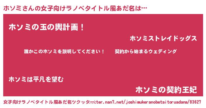 | 男性向けラノベタイトル風あだ名 | 『ホソミアートオンライン』 |