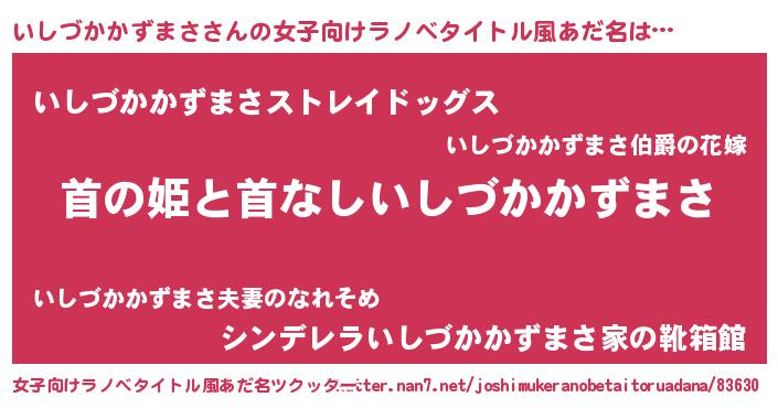 | 男性向けラノベタイトル風あだ名 | 『はたらくいしづかかずまささま!』 |
