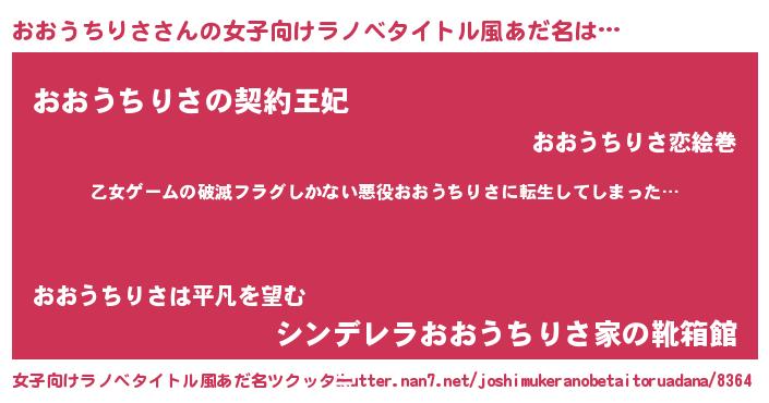 | ヘコむあだ名 | 『おおうちりさ(遠い目)』『おおを』 |