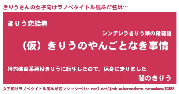 | 意味不明あだ名 | 『ペロリンきりう』『自称きりう』 |