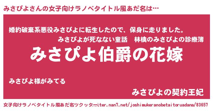 | ファンタジー風あだ名 | 『エターナルミサピヨー』 |