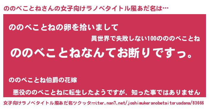 | ポケモン風あだ名 | 『ノノセウス』『ヒノノベコトネ』 |