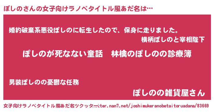 | 意味不明あだ名 | 『住所不定無職ぽしの(5歳)』 |