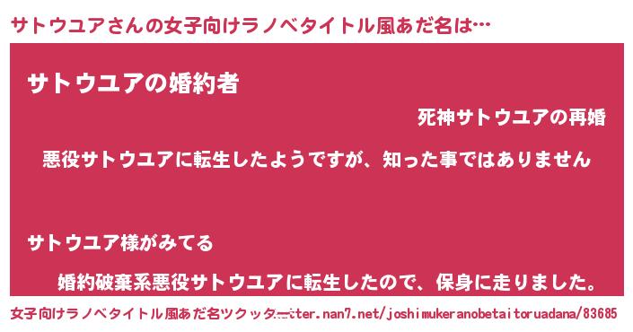 | 意味不明あだ名 | 『住所不定無職サトウユア(74歳)』 |
