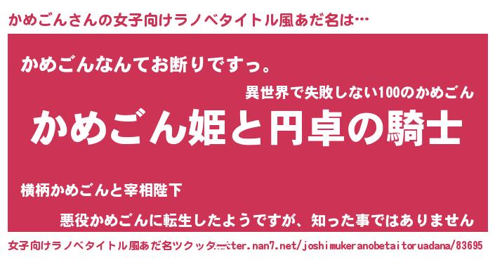 | 男性向けラノベタイトル風あだ名 | 『カメゴンアートオンライン』 |