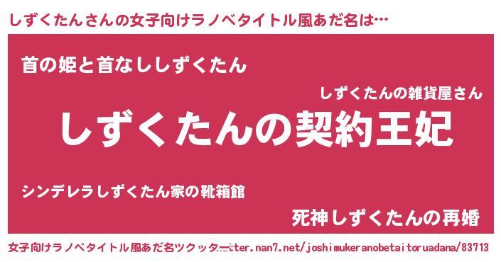 | 胡散臭い通販商品みたいなあだ名 | 『来世でも幸せになれる水素水…その名も「しずくたん」』 |