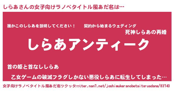 | 胡散臭い通販商品みたいなあだ名 | 『ガンによく効く高麗人参…その名も「しらあ」』 |
