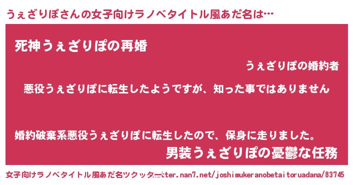| 胡散臭い通販商品みたいなあだ名 | 『あなたにだけ特別に提供する限定10本のレアな日本酒…その名も「うぇざりぽ」』 |
