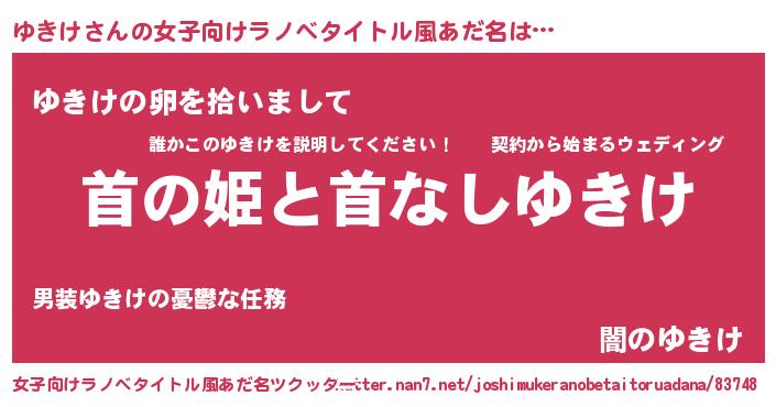 | 男性向けラノベタイトル風あだ名 | 『はたらくゆきけさま!』 |