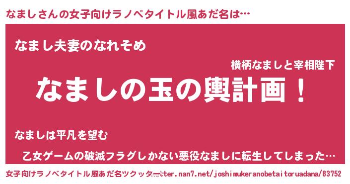 | 意味不明あだ名 | 『なめこ科なまし属』『自称なまし』 |