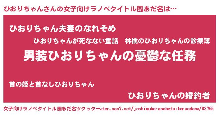 | 男性向けラノベタイトル風あだ名 | 『冴えないひおりちゃんの育てかた』 |