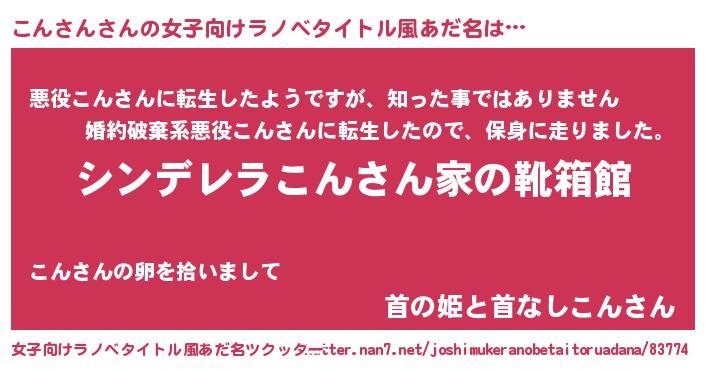 | 男性向けラノベタイトル風あだ名 | 『冴えないこんさんの育てかた』 |