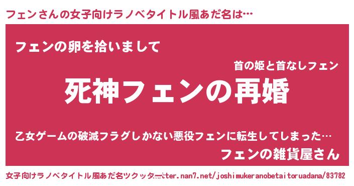| 男性向けラノベタイトル風あだ名 | 『ノーゲーム・ノーフェン』 |