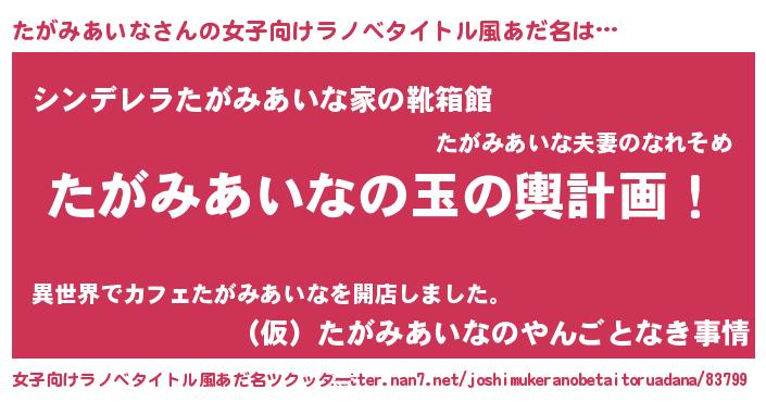 | ヘコむあだ名 | 『たがっふぃ~』『たがみあいな(苦笑)』 |