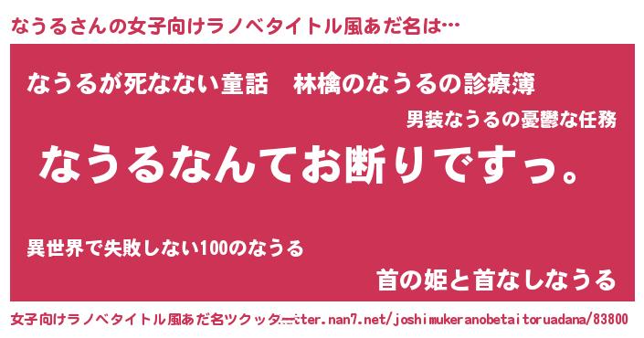 | ヘコむあだ名 | 『なうる(笑)』『なうっ子』 |