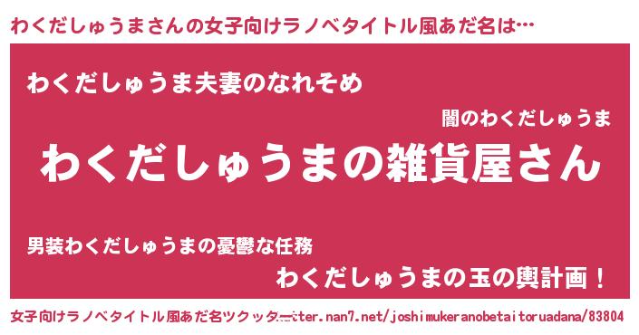 | 男性向けラノベタイトル風あだ名 | 『やはりわくだしゅうまの青春ラブコメはまちがっている 』 |