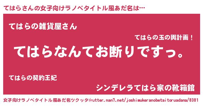 | 意味不明あだ名 | 『自称てはら』『てはらフォーエバー』 |